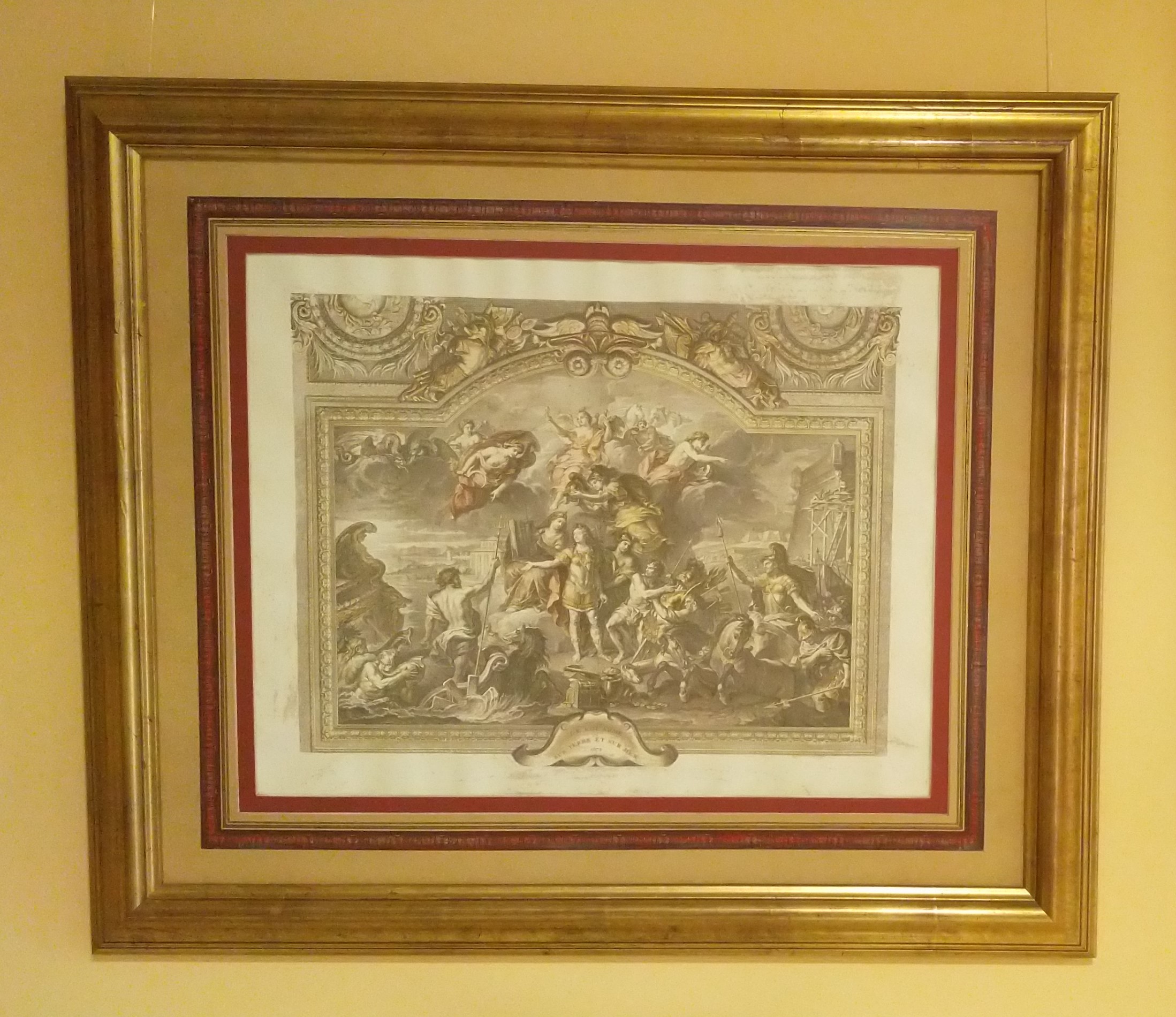 Marco de pan de oro al agua con doble passepartout decorado y envejecido.